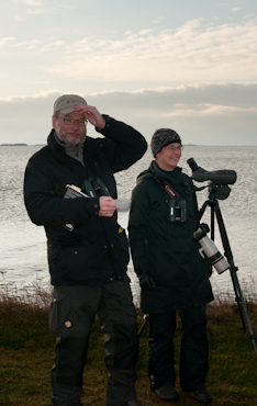 Enligt programmet skulle vi hålla på fram ”tills det mörknar”, men det måtte ha mörknat tidigt för de flesta för vi var bara tre som verkligen levde upp till det. Avslutningsvis vill jag tacka exkursionsledarna för en mycket trevlig eftermiddag/kväll. Jag vet egentligen inte vem eller vilka som var exkursionsledare, men jag tycker att vi hade tre viktigpettrar (eller vad det heter), som var viktigare än oss andra. Tack vare Greger kunde vi arta precis alla fåglar som passerade. Han är ju helt makalöst duktig och dessutom intressant att lyssna på även om han är lite väl petig med kaspiska trutar. Evert var som vanligt en klippa och är en publikdragare i sig och Ulrika stod för det viktigaste, grillarna.