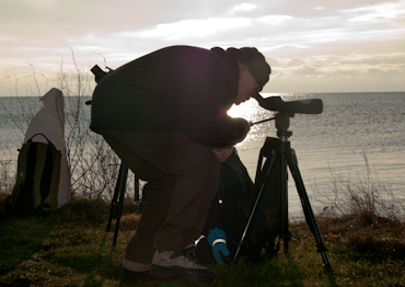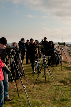 Jag och Evert sa till Greger att det flög en kaspisk trut förbi, men Greger underkände den. Jag sa att du tittade ju i tuben på gråhakedoppingar långt i fjärran. Ja, men bara med ena ögat, det andra spanade rakt upp efter kaspiska trutar och det kom ingen, sa han. Inte nog med att han kan titta på alla håll samtidigt. Han såg svarta vingsidor på fåglar som jag, trots max förstoring, bara såg som en liten prick i fjärran. Två såna som Greger längs den skånska kusten, så kunde vi lägga ner radarförsvaret (om vi nu har något).