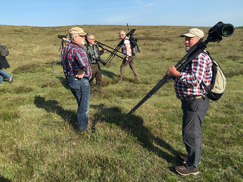 Vädergudarna var på vår sida så att det var varmt och behagligt och regnskurarna höll sig borta. Vadare fanns det att titta på. Tyvärr med lite långa avstånd då området framför tornet torkat ut under försommaren. Inblandat i kärrsnäppeflockarna fanns ordentligt med granna spovsnäppor och ruggande brushanar. Efter en stunds letande identifierades även 3 myrsnäppor i flockarna. En stor grupp skärfläckor fanns församlade. Dock med få ungar/ungfåglar då häckningen gått dåligt här i år. Även en del tringa-vadare som gluttsnäppa, skogssnäppa, grönbena och rödbena fanns på plats. Liksom de obligatoriska kentska tärnorna som har som vana att ställa sina nyss flygga ungar från kolonin i Blekinge här.