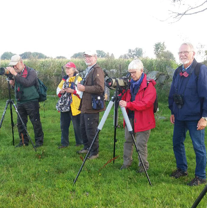 En exkursion som redan på ditvägen gav fina observationer. Det började med att ca 2700 vitkindade gäss villigt lät sig observeras i anslutning till färdvägen när dessa gick och betade på ett höstsått fält och som avslutades med att Sveriges ”höjdarfågelart” nummer ett kunde observeras i anslutning till strandkanten och ängarna. Egentligen inte bara en fågel utan sex stycken. Däremellan räknades det in 50 andra arter, alltså totalt 52 olika fågelarter.